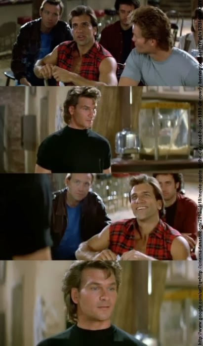 “No, it’s two nouns combined to elicit a prescribed response,” Swayze’s character, Dalton, replies.