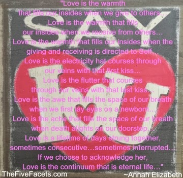 Love is the warmth that fills our insides when we give to others… Love is the warmth that fills our insides when we receive from others… Love is the warmth that fills our insides when the giving and receiving is directed to Self…
