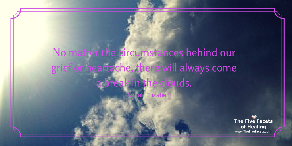 No matter the circumstances behind our grief or heartache, there will always come a break in the clouds Annah Elizabeth Quote