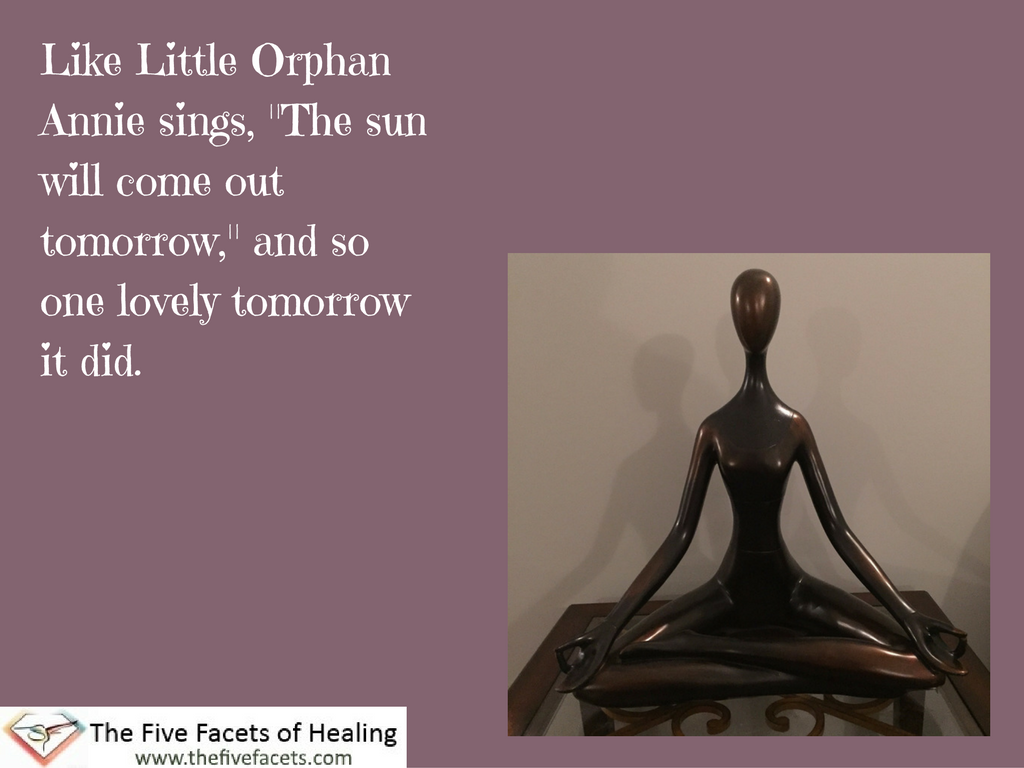 I used that unexpected free time taking care of some new endeavors for The Five Facets of Healing, and I let the world know I have a few Life Coaching openings to help our neighbors find resolution in conflict and grief, and that I am booking Energy Therapy sessions.