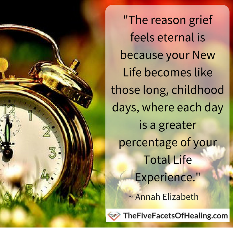 The reason grief feels eternal is because your New Life becomes like those long, childhood days, where each day is a greater percentage of your Total Life Experience.