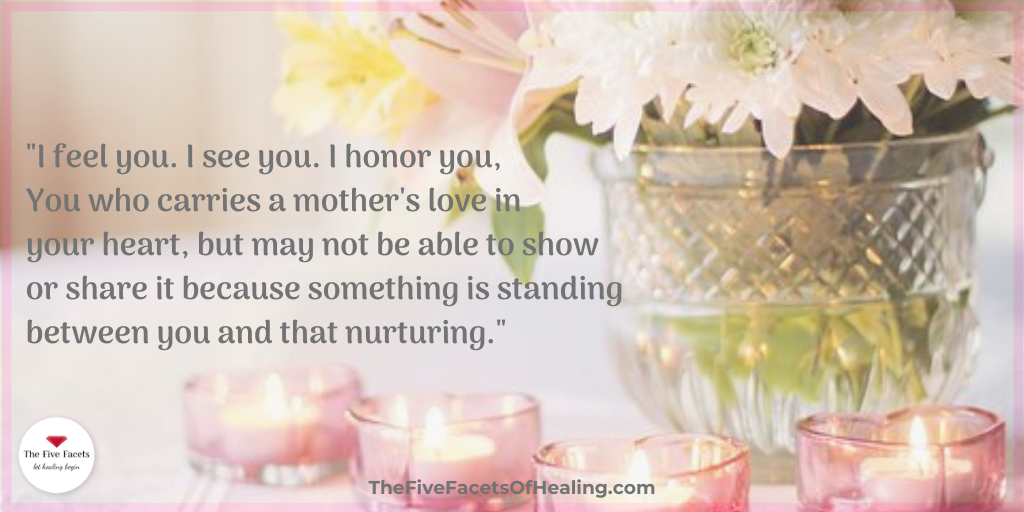 I feel you. I see you. I honor and salute you, each of you who carries a mother’s love in your heart, but may not be able to show or share it because something is standing between you and that nurturing.